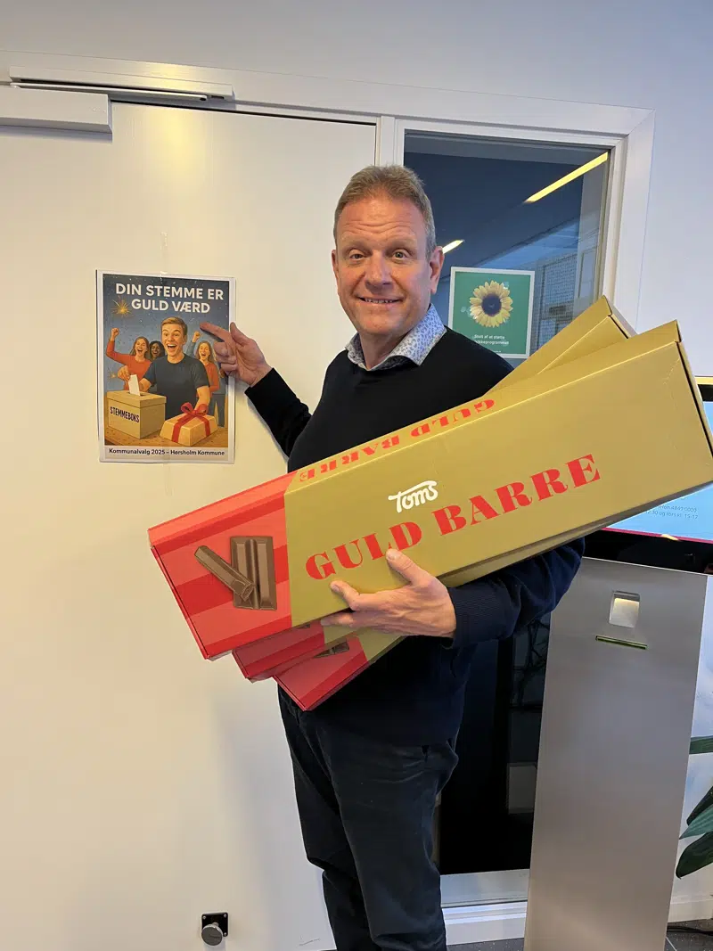 Som en ekstra opmuntring får alle førstegangsvælgere en chokolade-guldbarre, når de møder op på valgstedet den 18. november. En lille symbolsk gestus til de unge vælgere, der trodser tendenserne og deltager i lokaldemokratiet.
