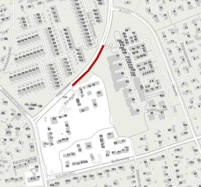 I uge 29 skal der sættes nye kantsten på Højmosen mellem kørebanen og cykelstien. Det betyder, at Højmosen vil være spærret fra d. 16. juli til d. 23. juli begge dage inklusiv i det sydlige spor mellem PH Park og til den nordlige sidevej Ved Højmosen.