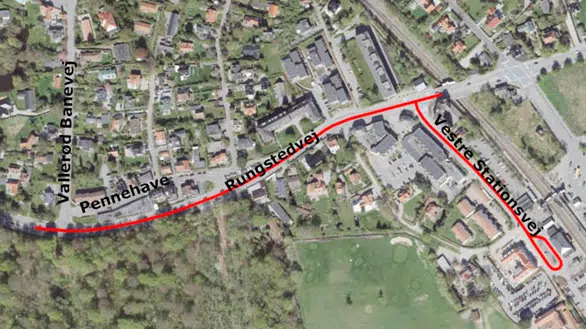 • er Vallerød Banevej og Pennehave helt afspærret mod Rungstedvej. Disse 2 veje vil have adgang via Vallerød Banevej fra nord.